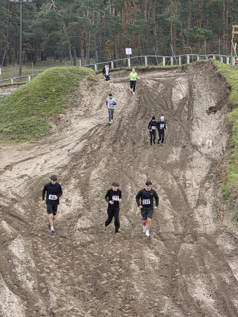 Den Sonntag zuvor, am 09.11.25 fand in Dreetz wieder der Crosslauf auf dem eigentlichen Motocrossgelände statt. Da wir als Schule auch regionale Events unterstützen wollen, wurde der 4- bzw. 8km-Lauf nun zum zweiten Male bei unseren Schülerinnen und Schülern (SuS) beworben. Fast 100 Läufer kamen an diesem Vormittag nach Dreetz, um an den Start zu gehen, 45 davon vom Gymnasium Kyritz. Alle hielten durch, kämpften sich die Hügel rauf und runter und schafften es über die Ziellinie. Zeit und Platzierung waren dabei weniger entscheidend, vielmehr das Lauferlebnis, das durchaus einzigartig ist auf der Crossstrecke. Wir hoffen, wir können auch nächstes Jahr wieder mit einigen unserer SchülerInnen an den Start gehen.