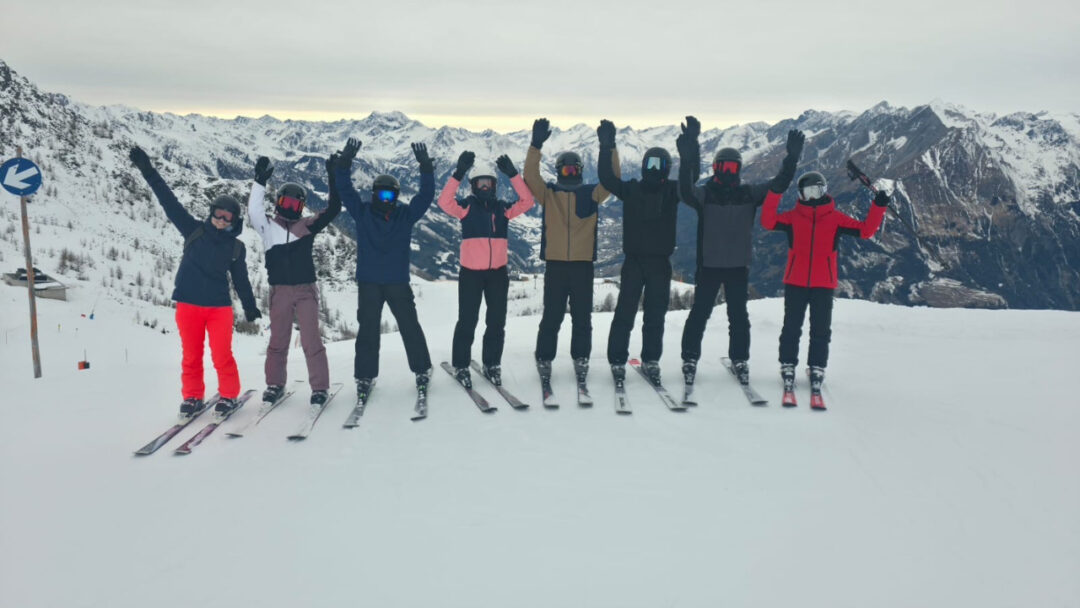Für die 17 Anfängerinnen und Anfänger begann die Woche mit einer Einführung in die Grundlagen des Skisports. Schritt für Schritt sammelten sie ihre ersten Erfahrungen, vom Anziehen der ungewohnten Skischuhe bis hin zu den ersten Gleitversuchen in der Ebene. Trotz anfänglicher Unsicherheiten war schnell klar, dass sich die Anstrengung lohnen würde. Schon nach kurzer Zeit zeigten sich deutliche Fortschritte, sodass viele Anfänger rasch zu den Fortgeschrittenen aufschließen konnten. Dies ermöglichte es, an den letzten beiden Skitagen in der gesamten Gruppe gemeinsam auf der Piste unterwegs zu sein. Gleichzeitig nutzten auch die Fortgeschrittenen die Woche intensiv, um ihre Technik durch gezielte Übungen weiter zu verfeinern.
